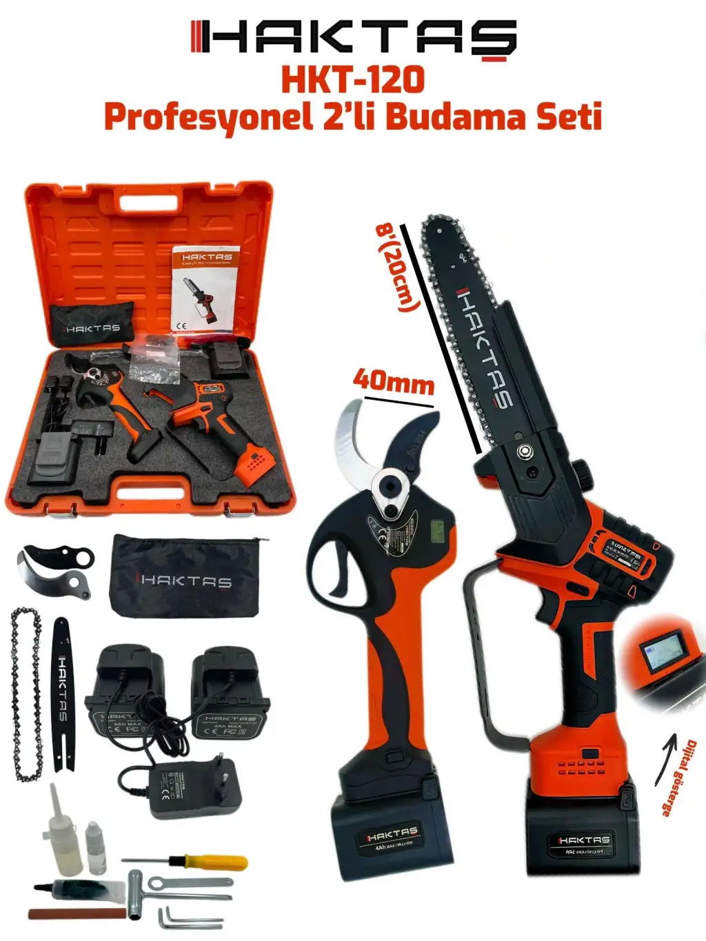 HAKTAŞ AKÜLÜ BUDAMA MAKASI VE AKÜLÜ ZİNCİRLİ TESTERE İKİLİ SET (HKT-120)